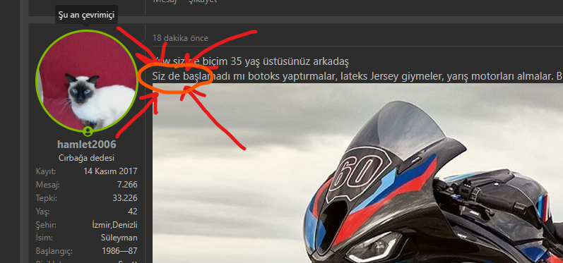 35 yaşında ergenliğini tamamlamayanlar var, o 45-50 lerde olur demişsin. Doğrudur. Her yazılana itiraz mı edeyim ya da her doğru yazana tamam doğrudur, eyvallah mı diyeyim.adam başkasına yazılan mesajı üzerine alınırken kendinin etiketlndiği mesaja cevap yazmıyorneyse sen bilirsin