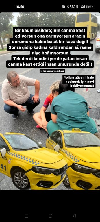 Instagram'da bir sayfada görmüştüm sağlık durumunu sorduğumda iyi olduğunu söylediler.Bu sabah bostancıda bir kadın bisikletliye çarpmışlar.Olaydan bilgisi olan var mı ?