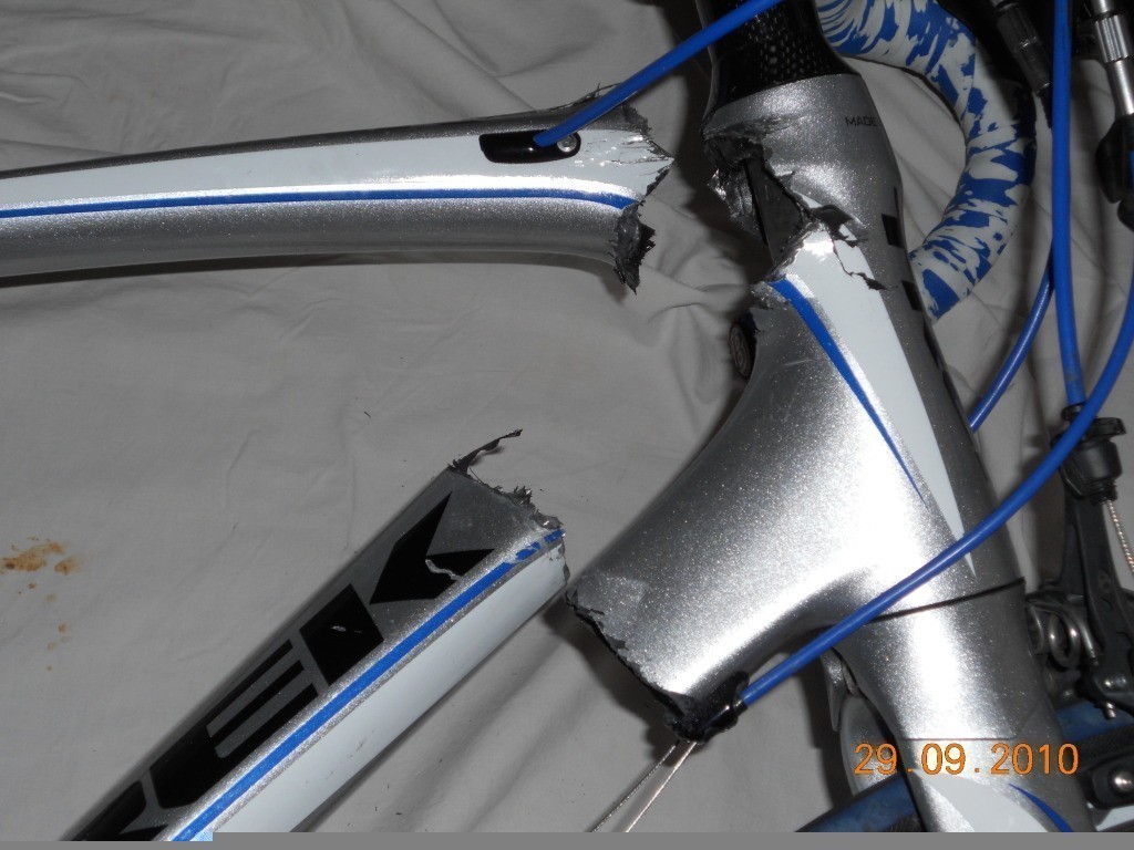 Kaza geçirmiş her kadro kırılabilir bu gayet normal bir durum. Pinarello, Cervélo, Look vs. dünyanın en iyi kadroları bile kaza anında kırılabilir.