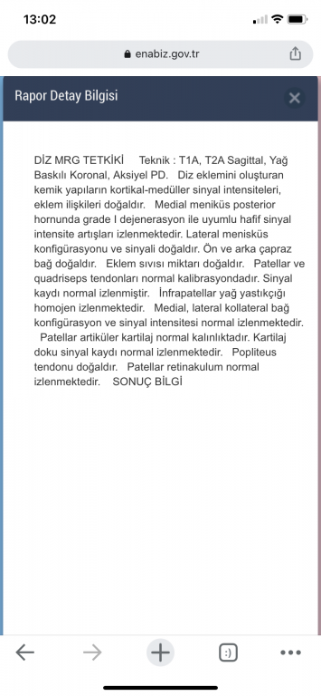 2.5 ay önce dizimin üstüne düşmüştüm. 20 gün önce mr çekildim dün raporu çıktı. Bilgili kişiler yorumlayabilir mi? 2-3 gün içinde sonuç için tekrar randevu alacağım. Günlük hayatımı etkilemiyor. Bisiklette de üst limitlerimde hafif ağrı hissediyorum.