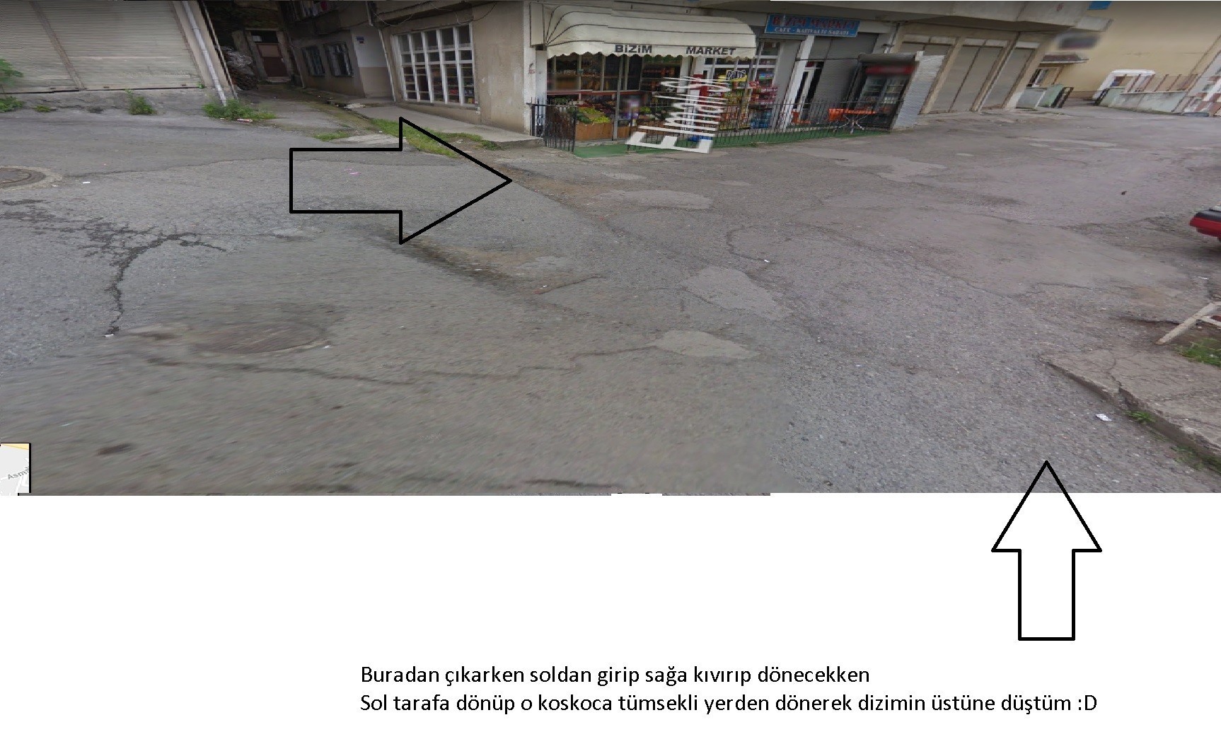 Bugün günü bitirecekken tümsekli yüksek yerden dönerken yere düştüm
