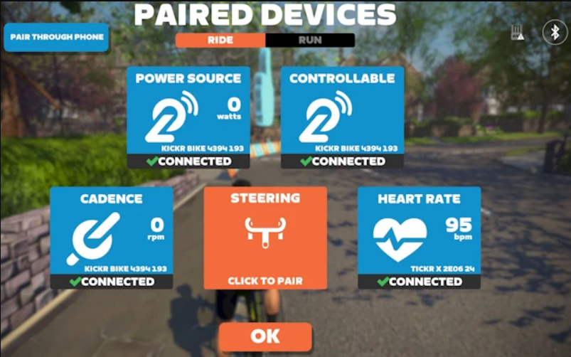 Zwift aşağıdaki gibi ayrı ayrı gösterir.