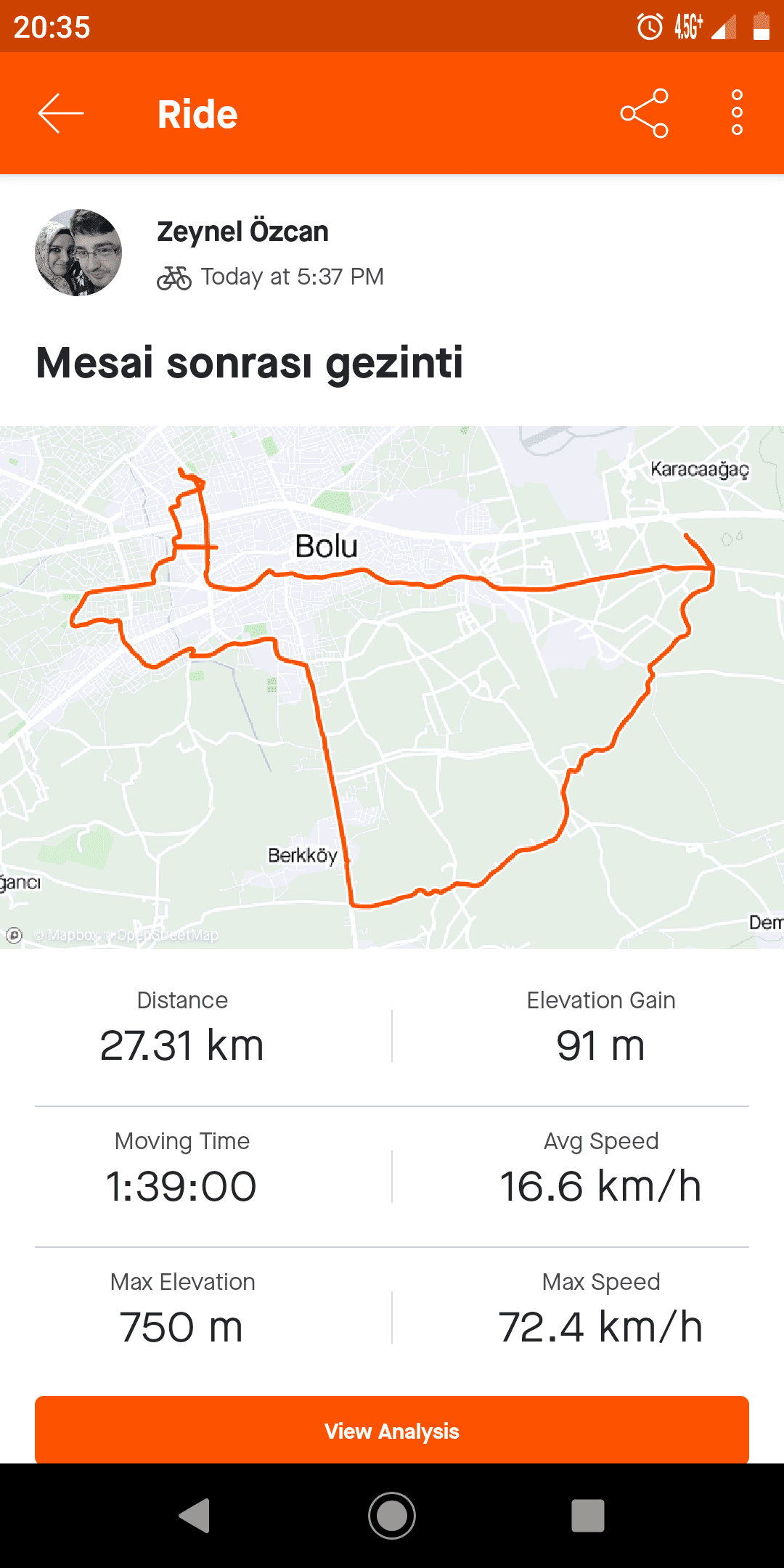 Bugün iş çıkışı ufak bir tur yaptım. 50 km'ye tamamlayacaktım aslında ama yağmur bastırdı.